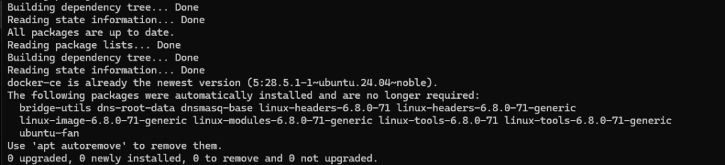 curl -fsSL https://download.docker.com/linux/ubuntu/gpg | sudo gpg –dearmor -o /usr/share/keyrings/docker-archive-keyring.gpg